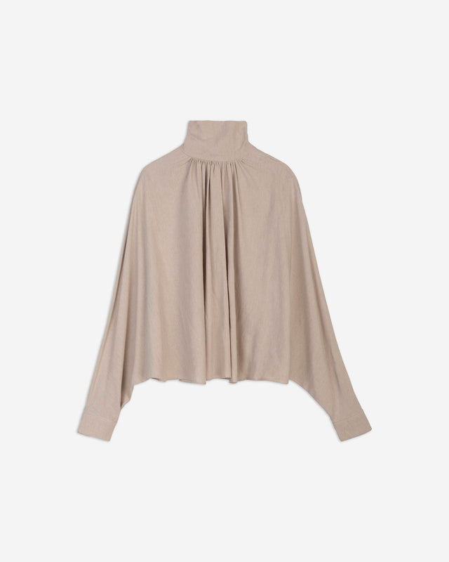 - High-neck flannel blouse