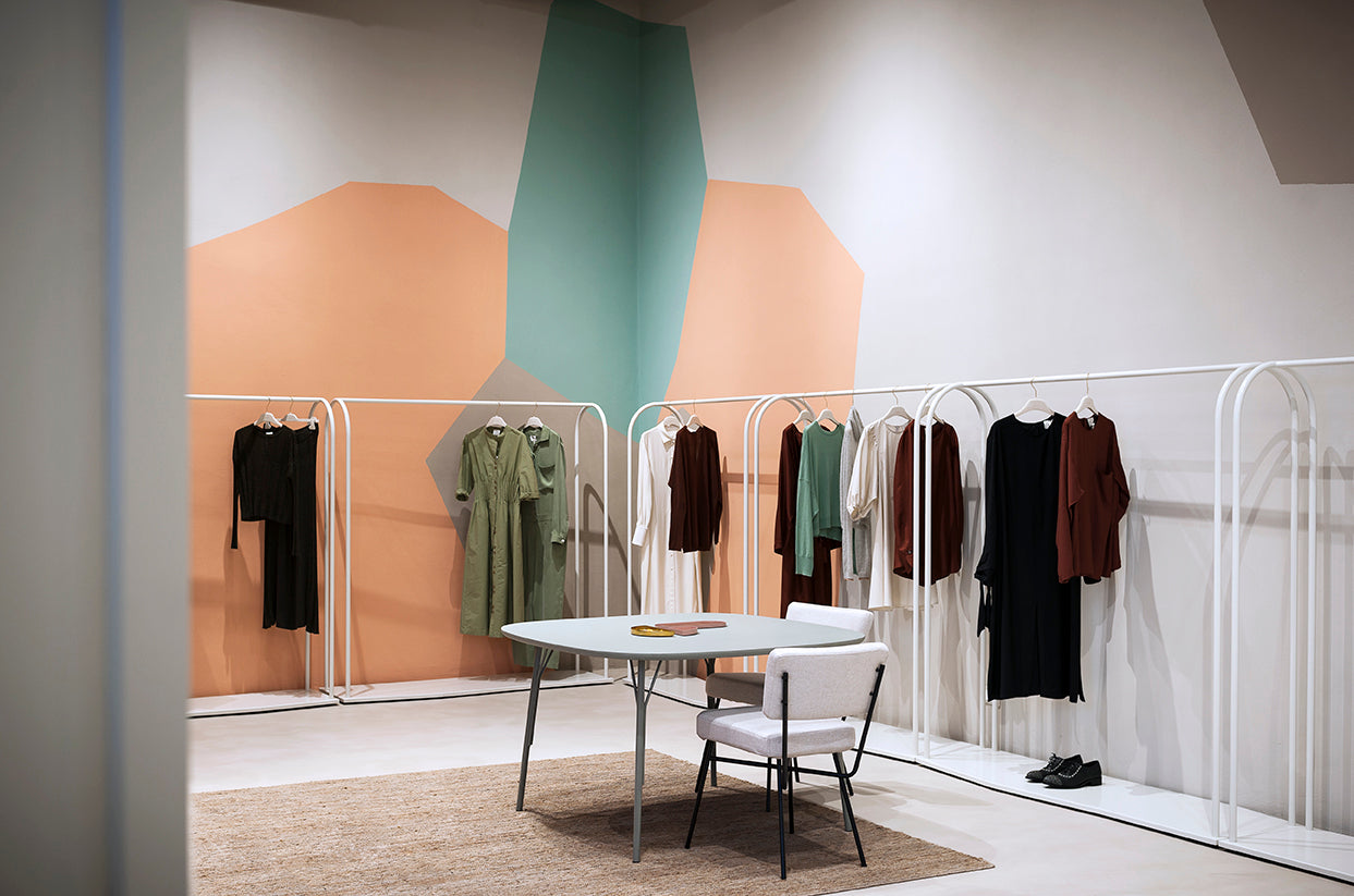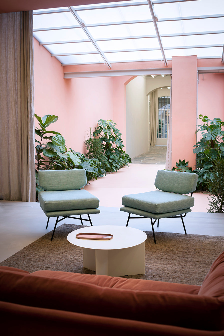 In the Garden House by ALYSI, vegetation becomes the frame for the succession of collections: the natural light that designs the space differently each time, the bright green and the light air, create a perfect harmony with the colours of ALYSI.