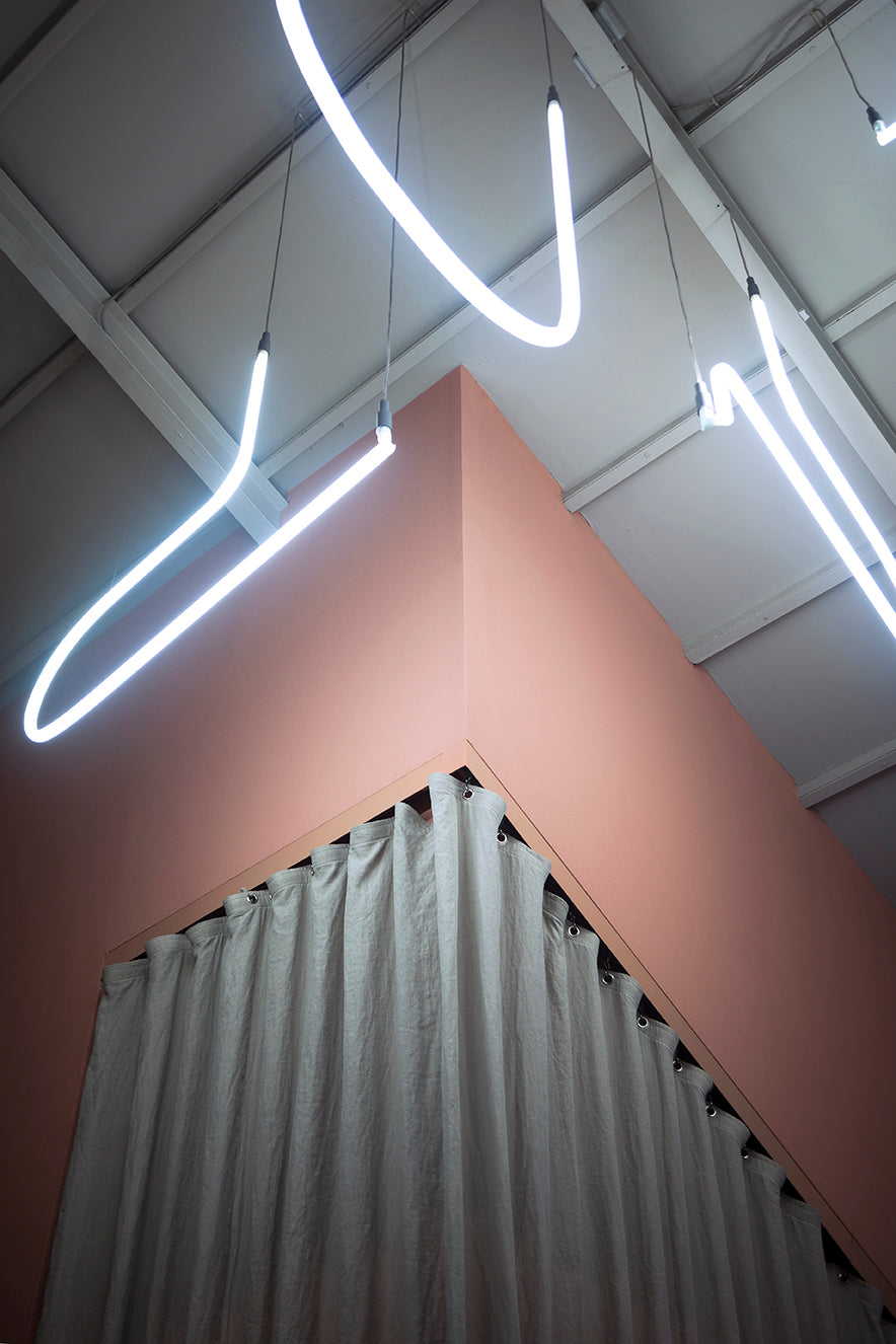 The entrance corridor takes you on a path that winds through the central part, shades of pink and palettes of mid-tones envelop the gaze. The multisensory experience is amplified by the touch of the surfaces, now smooth now rough, while the neon lines guide you to discover the collection. Every detail is designed to stimulate the senses: from the furnishing elements, which invite you to stop and touch, the volumes of color that capture the eyes, to the iconographic objects that tell stories and arouse curiosity.