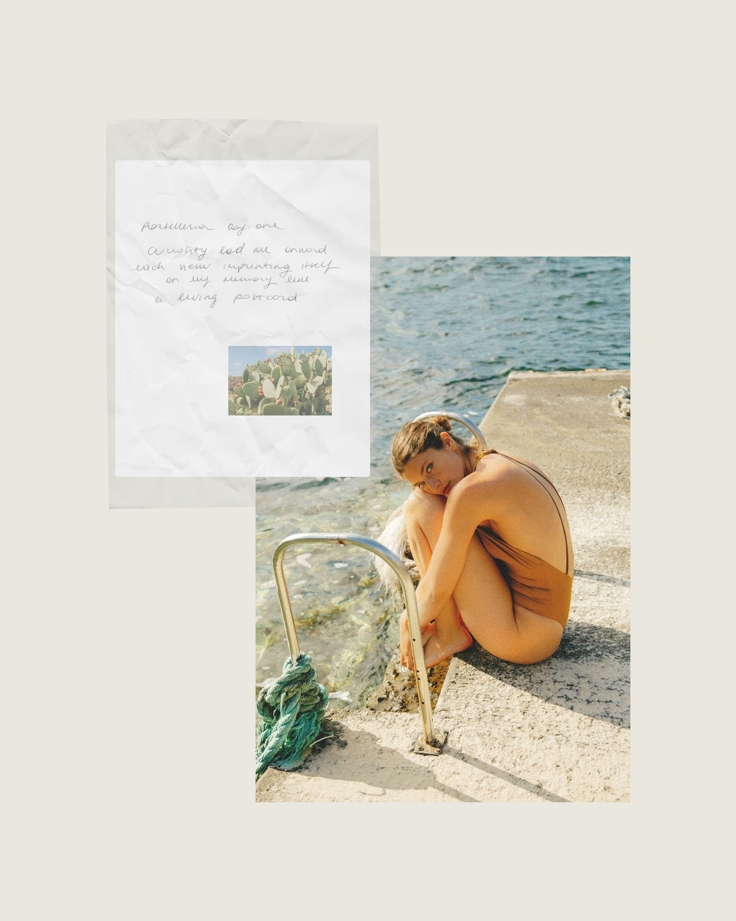 Wrapped in Alysi's flowing ivory, I immersed myself in the calm turquoise—each stroke a dialogue between body and sea.