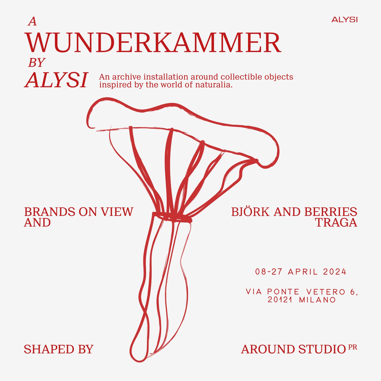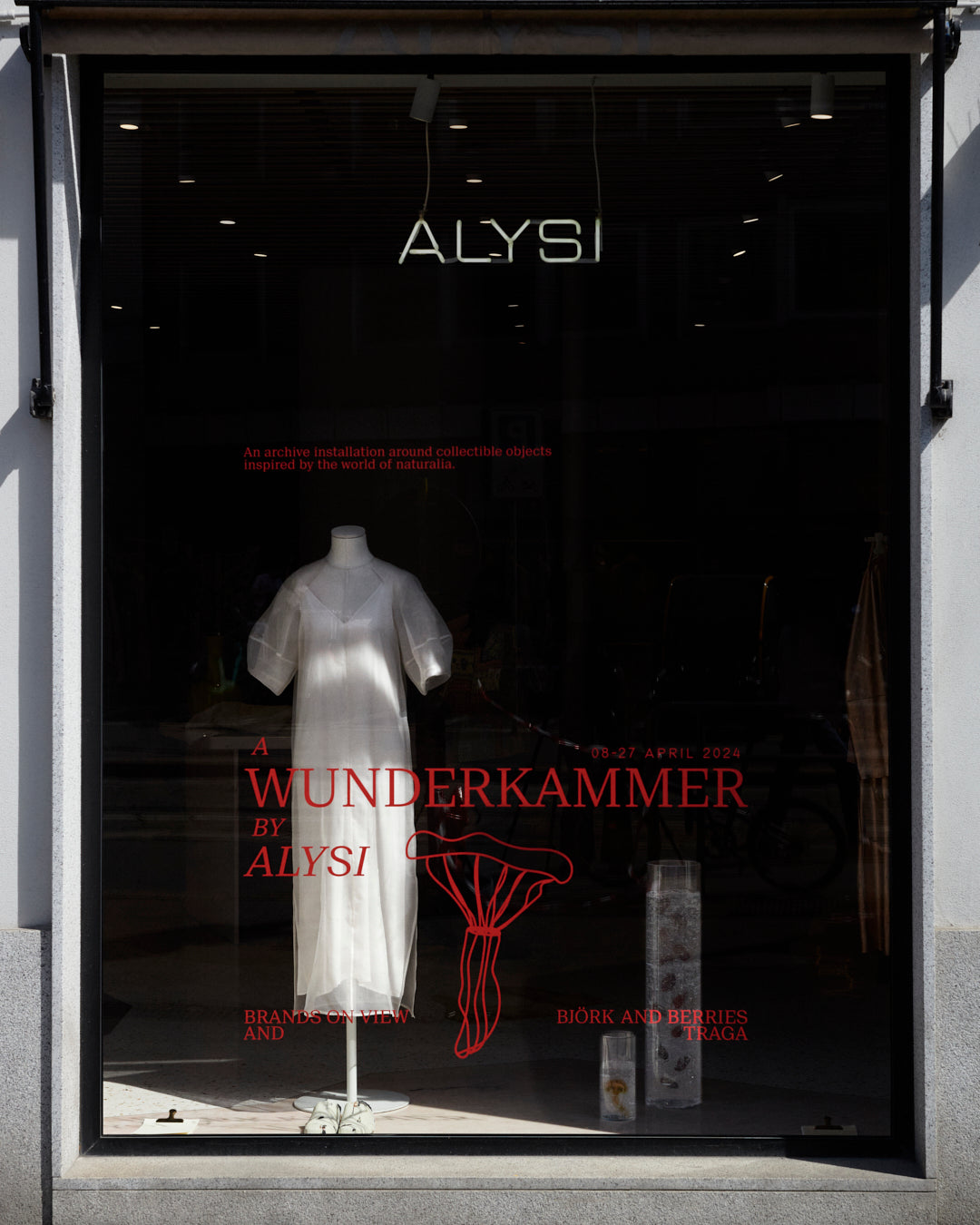 On the occasion of Design Week 2024 themed "Materia Natura", Alysi presents an installation curated by set designer Martina Sanzarello at the boutique in Brera District, which stages a Wunderkammer.