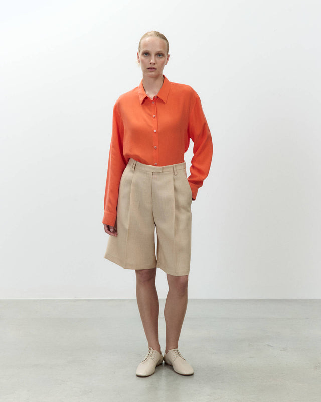 The model wears size 40, size S in knitwear and size 26 in denim.