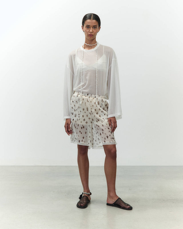 - 100% silk printed chiffon Bermuda shorts
